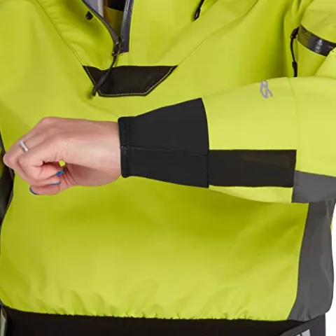 - Wrist cuffs are reinforced with extended neoprene protection to keep arms dryer