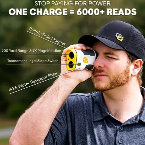 - FOR ALL CONDITIONS: Rain or shine, this rangefinder is your best friend. With our IPX5 water resistant shell you will never lose its functioning and with a rugged, ribbed ergonomic design, you will never lose grip!