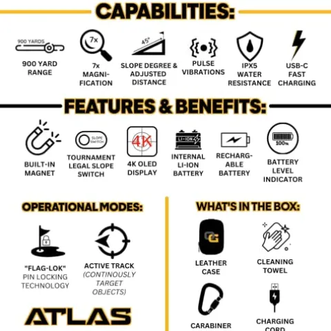 - FOR ANY GOLFER: We truly believe that the Atlas is the one rangefinder to rule them all. With pin locking technology and the ability to continuously target objects, this rangefinder is perfect for any golfer, no matter your level.