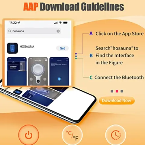 - Smart phone APP control: Our sauna room adopts the latest technology. The sauna room can be connected and controlled by mobile phone. Please search for “HOSAUNA” with your phone. Please check the product image for finding the software details.Then link to the sauna Bluetooth and control the sauna according to the instructions.