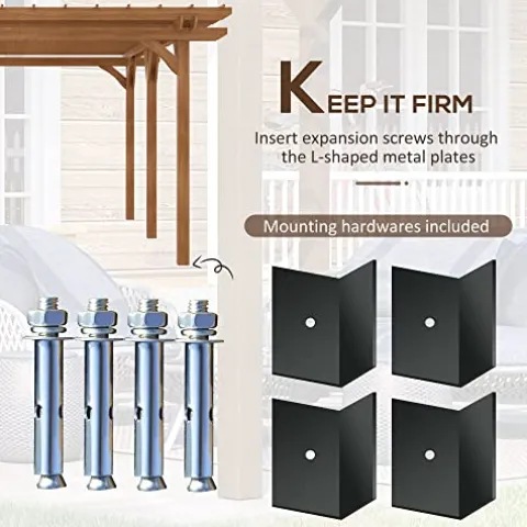 - Year-Round Pergola: Intended to be a permanent structure, our garden pergola is made to endure outdoor conditions year-round. It’s made of paint-protected fir wood for water resistance. Included are a set of expansion screws and L-plates to mount it to solid ground such as concrete.