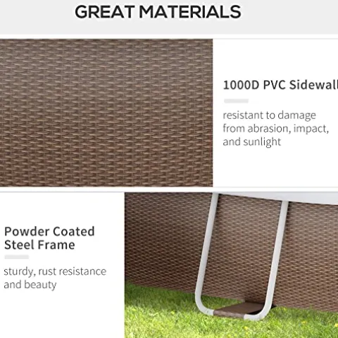 - Semi-Inflatable Pool: The walls of our rectangular pool are made of 1000D PVC with an interlayer mesh. This reinforcing mesh makes the pool puncture-proof and outdoor-ready with only the outer ring requiring inflation.