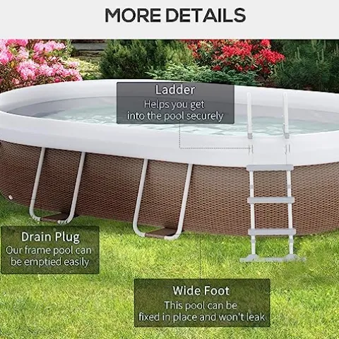 - Strong Steel Frame: The frame of our outdoor pool with pump is made of load-bearing steel, helping it hold enough water to make your swim space more than a foot deep.