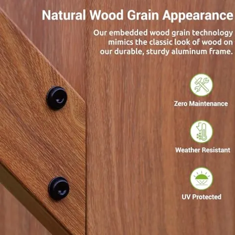 - FUNCTION AND STYLE: Our Embedded Wood Grain technology mimics the classic look of wood – without the costly maintenance. Paired with our water-resistant, UV protected canopy, this outdoor pergola is not only beautiful but durable.