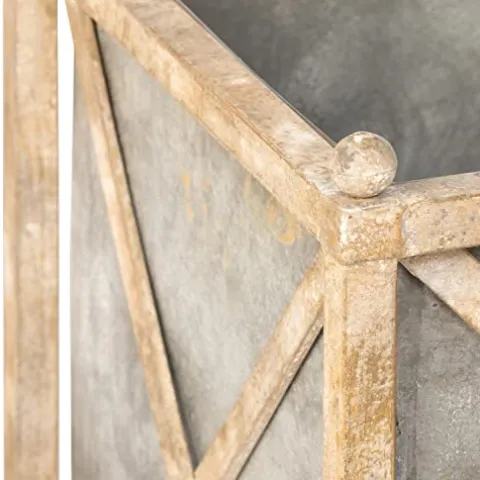 - As though it were straight from the garden of a grand estate, the old world frame and tin liner of this large planter can be used to showcase a wide variety of ornamental trees and shrubs.Features