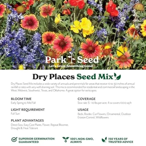 - Wide Adaptability: Specially designed for areas with 10-30 inches of annual rainfall or well-draining soil, this Dry Places Seed Mix is perfect for xeriscaping and water-wise landscaping.