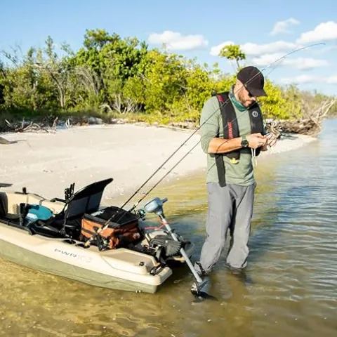The Pelican Catch PWR 100 Sit-on-Top Fishing Kayak offers an exceptional fishing experience with its innovative features. The Ergo360 seating system allows for customizable positioning and a 360-degree swivel, enhancing comfort and flexibility while on the water. With a pre-installed independent transom ready for gas or electric motors up to 2.5 hp, and pre-wired design for easy battery connection, this kayak is efficient and convenient. Additionally, the included gear tracks provide ample space for accessories, and the traction pads ensure a safe and quiet fishing environment. Dive into an unparalleled fishing adventure with the Pelican Catch PWR 100.