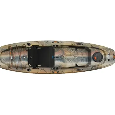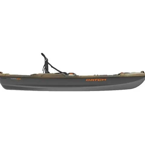 The Catch Classic 100 Sit-On Kayak in Outback and Magnetic Grey by Pelican offers a premium kayaking experience with its ERGOCAST CLASSIC dual position seating system, ensuring comfort during long paddling sessions. With a weight capacity of 350 lbs, this kayak is perfect for all skill levels. Features such as robust carrying handles, quick lock hatch, adjustable footrests, rigging tracks, paddle rest, rod holders, paddle tie down, tank well with bungee cord, and drain plug make this kayak versatile and convenient. The sleek outback and magnetic grey color adds a stylish touch to your outdoor adventures.