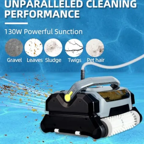 - Powerful Wall Climbing: The pool cleaning robot features a robust 5A power motor that enables efficient wall climbing and simultaneous brushing, ensuring thorough cleaning of pools of any shape without the need for manual operation. The quick and effective wall climbing capability enhances the cleaning performance, saving time and effort.