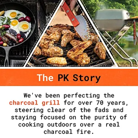 - BEST IN CLASS WORKSPACE – Bbq smoker unique, black durabilium(tm) shelves are removable and stowable on integrated side hooks of the outdoor griller. Grilling is about flavor. No other manufactured fuel, neither propane gas nor pellets, can provide the authentic grilled flavor of a charcoal-fired PK Grill and Smoker.