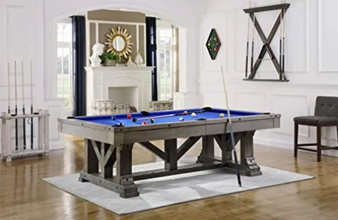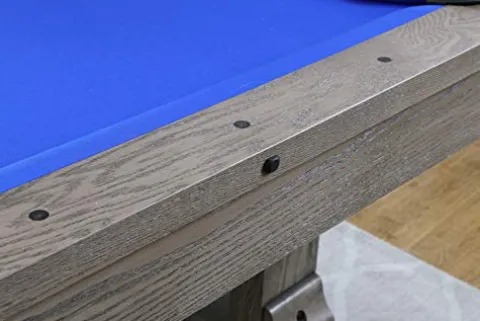 Enhance your game room with the Playcraft Cross Creek 7′ Slate Pool Table in Pewter. This stunning piece features a timber frame design with hand finishing for a distinctive old world style. The 3-piece premium slate system ensures a smooth playing surface, with leveling hardware for precise adjustments. Choose from 25 cloth colors to customize your table, and enjoy peace of mind with a 5-year warranty against manufacturing defects. Available in 7’ and 8’ sizes, this pool table offers the perfect blend of elegance and functionality for endless entertainment. Professional installation is recommended to complete your game room setup.
