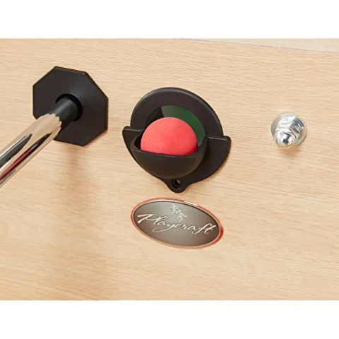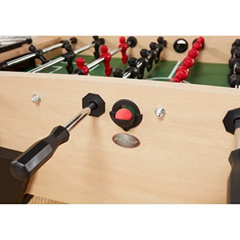 Enhance your game room with the Playcraft Milan – European Style Foosball Table in Light Maple. Featuring durable 1.40” thick side aprons, a metal striker plate in the goal, and counterbalanced robot style men with tournament-shaped feet, this foosball table offers a premium playing experience. The chrome-plated telescoping steel rods with men factory molded around internal steel supports ensure smooth and precise gameplay. Additionally, adjustable leg levelers provide stability on any surface. Elevate your foosball skills and enjoy hours of competitive fun with this high-quality and stylish foosball table from Playcraft.