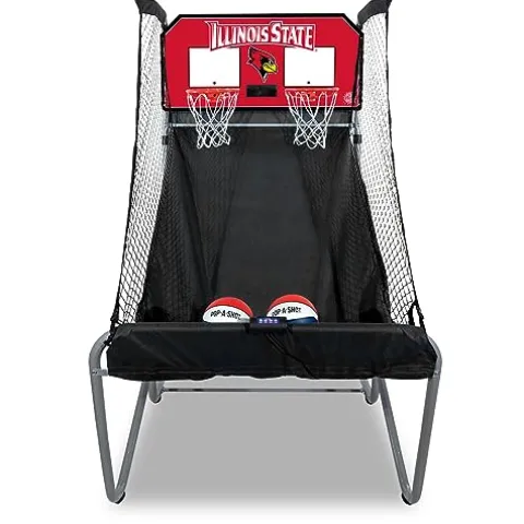 Elevate your game room with the Pop-A-Shot Home Dual Shot, featuring exclusive Illinois State Redbirds NCAA graphics. This premium basketball arcade game offers 16 engaging modes, ensuring endless fun for all NCAA fans. Built with robust 1 ½” steel tubes and a durable nylon ramp, it promises longevity and resilience. The nearly flawless sensor scoring system guarantees accuracy, while the large scoreboard and audio options enhance the experience. Designed for versatility, it adapts to various ceiling heights and is easily transportable with wheels, powered by either batteries or AC adapters. Complete with a 12-month warranty, the Pop-A-Shot Home Dual Shot is the ultimate choice for basketball enthusiasts seeking quality and excitement.