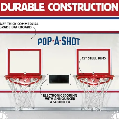 Experience the thrill of arcade basketball right in the comfort of your own home with the Pop-A-Shot – Pro Dual Shot. This commercial-grade game features infrared sensor scoring for nearly 100% accuracy, along with 16 game modes and 7 basketballs for endless fun. With a sturdy 1/4″ steel frame and a foldable design for easy storage, this game is perfect for players of all ages. The game also offers a 365-day manufacturer’s warranty for worry-free enjoyment. Elevate your home entertainment with this top-of-the-line arcade basketball experience from Pop-A-Shot.