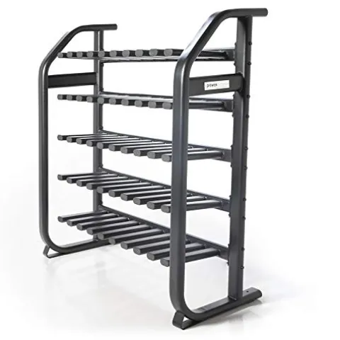 Organize your Power Systems Cardio Dumbbells in style with the Denali Series Vertical Dumbbell Rack. This sleek, black rack is not only visually appealing but also designed for maximum functionality. Its vertical layout saves space and allows for easy access to each dumbbell weight, accommodating up to 99 pairs of Cardio Dumbbells. Exclusive to Power Systems, the Denali Series features superior construction with reinforced steel, rubber shelf liners, and floor-securing holes. Designed to protect your investment, this rack keeps your fitness equipment clean and damage-free. Upgrade your storage solution with the Denali Vertical Dumbbell Rack.