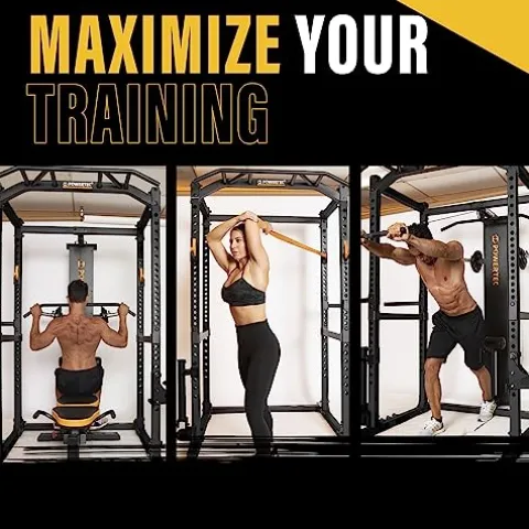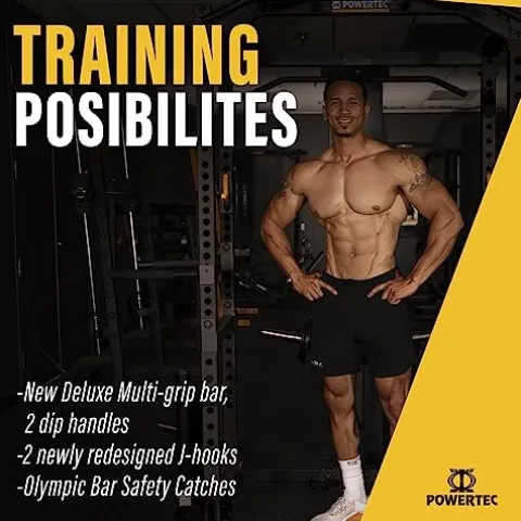 - Versatile Station: This weight lifting rack includes a deluxe multi-grip bar, dip handles, 2 newly designed J-hooks, and the Olympic bar safety catches, making this the ideal workout cage to expand your training possibilities and see amazing results!