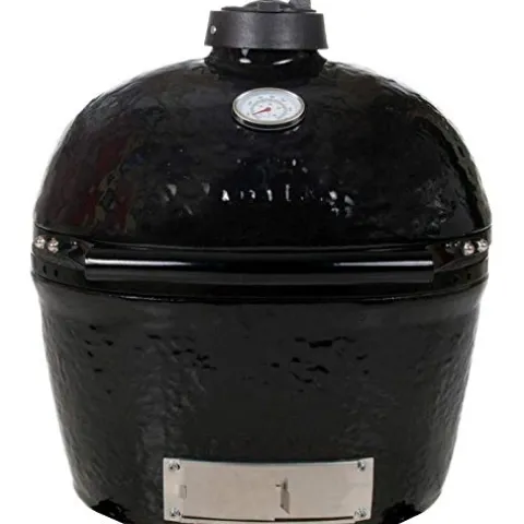 The Primo 774 Ceramic Charcoal Smoker Grill, Oval Junior, offers an innovative oval design that enhances your grilling and smoking experience with unmatched versatility. With a standard cooking surface of 210 square inches—expandable to 360 square inches with rack extensions—this grill accommodates everything from intimate meals to larger gatherings. Crafted from a premium-grade ceramic blend and coated with a lead-free, scratch-resistant porcelain glaze, it ensures durability and efficiency while maintaining consistent temperatures. Measuring 24 by 22 by 16 inches, this grill is backed by a 20-year warranty on all ceramic parts and proudly made in the USA, making it a reliable addition to any outdoor kitchen. Enjoy the art of outdoor cooking with the Primo Oval Junior, where quality meets performance.