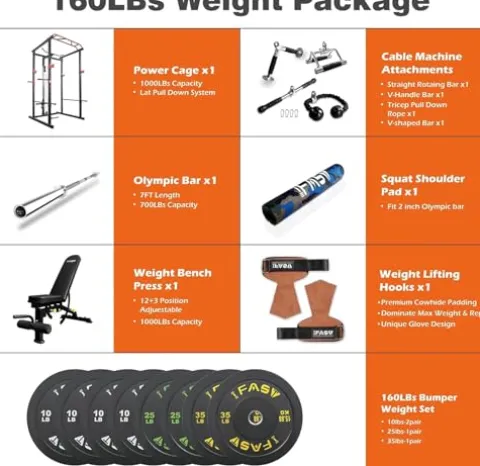 - Power Cage with Lat Pull-down:The IFAST Power Cage with Lat Pull-down Attachment is a functional piece of equipment that decreases the risk of injury when lifting solo and at higher weights.
