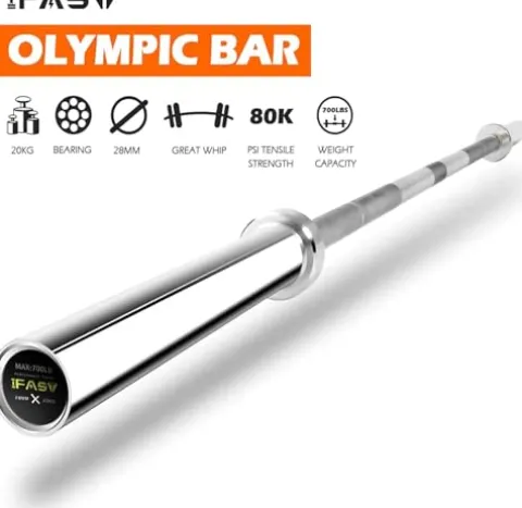 - 7 FT Olympic Bar:Needle bearings allow for a smoother, quieter spin and a more reliable turnover at maximum loads. It is perfect for general Olympic lifts and Powerlifting at home or in the gym, with comfortable knurling, composite bushings, and great tensile strength.