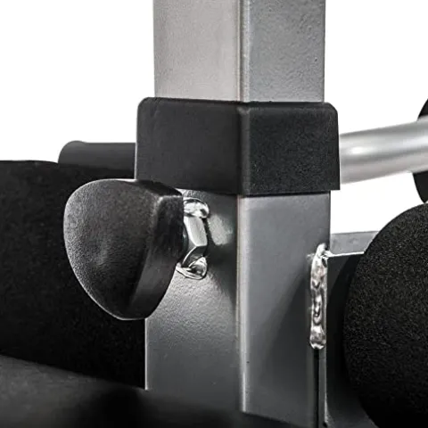 - Sturdy steel frame with a load capacity of 550 lbs. Compatible with standard and Olympic size weights. Safety foam rollers to hold you firmly in place while performing reps.