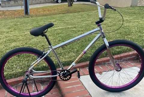 Get ready to turn heads with the R4 Pro 26 Inch Wheelie BMX Bicycle featuring a stunning retro look and looptail design. This adult/youth bike in chrome with purple wheels is not just about style – it’s packed with features to elevate your riding experience. From the 4 included pegs for stunts to the unisex design, this bike is built for quality workmanship and performance. With 2.20 tires and a manageable weight of 29 lb, the R4 Pro BMX Bicycle is the perfect choice for those who appreciate both style and substance in their ride.