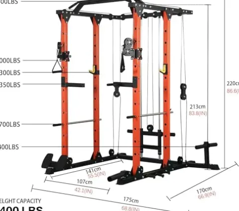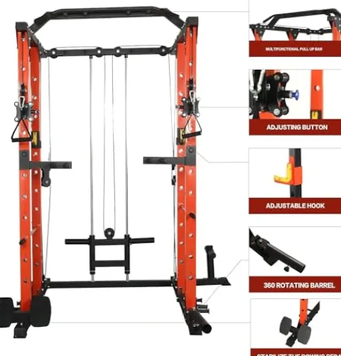 - [Sturdy Frame] Combining a weight cage, deep squat rack, and cable crossover, our fitness equipment is built with a sturdy frame using high tensile strength steel cable and high-quality pulleys. This ensures smooth operation and allows for a full-body workout without the need to switch between workout stations. The upgraded steel also provides increased stability.