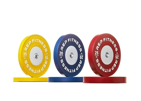 The REP kg Competition Bumper Plates, 120kg Set, is engineered for serious Olympic weightlifting enthusiasts seeking durability and performance. This set features pairs of 25, 20, and 15 kg plates in striking yellow, blue, and red, designed to fit Olympic bars with 2-inch sleeves. Crafted with a superior patented design that includes an extra inner steel ring, these plates efficiently absorb and disperse force, enhancing their durability. The low bounce 92 ShA Shore Durometer Rating ensures stability during lifts, while rigorous factory testing guarantees they withstand over 30,000 drops. Backed by a 5-year warranty, these bumper plates offer a reliable and resilient choice for any lifting regimen.