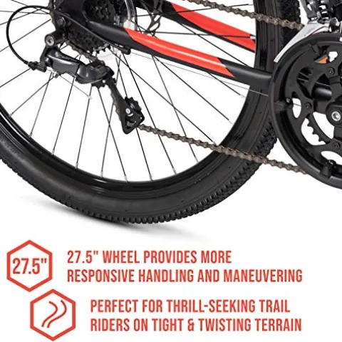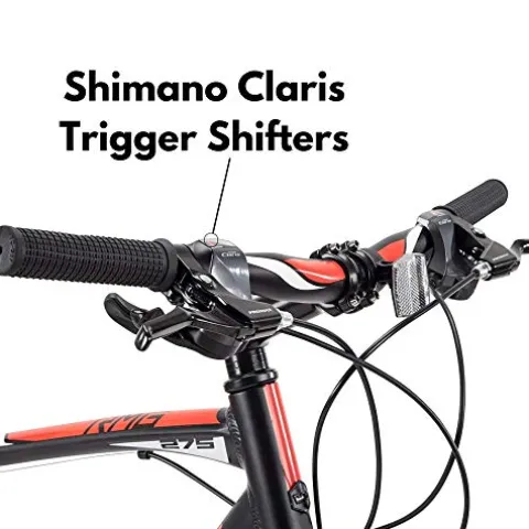 - 27.5” x 1.95” All-Terrain tires; switch from the road to the trail seamlessly; Shimano Claris rear derailleur provides you with 16 speeds to best suit your riding style; kickstand not included