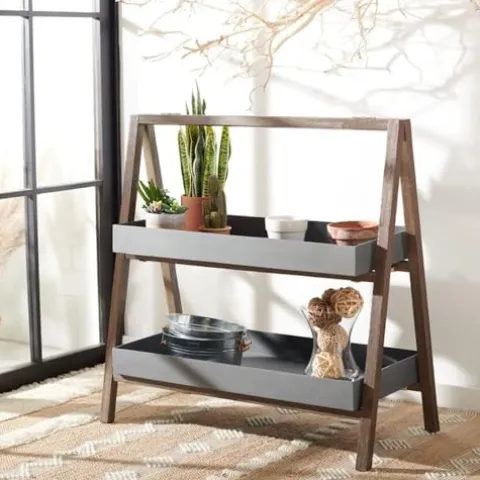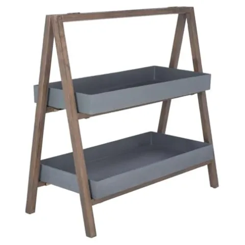 - Two (2) tiers are perfect for decorative pieces, greenery, outdoor supplies, garden tools, or poolside towels