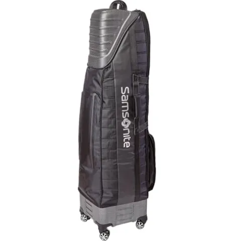 Transport your golf gear with ease and peace of mind using the Samsonite Golf Hard Top Golf Travel Cover. This durable travel cover features a hard side top that fully protects your club heads, while also accommodating longer 48″ clubs and 10.5″ bags, including longer length drivers. The revolutionary high-performance Shark Wheels ensure smooth rolling across any surface, making it effortless to maneuver. The padded interiors with luxurious lining provide a secure and cushioned space for your valuable clubs. With convenient comfort handles at the top and side, this travel cover is perfect for easy transport at the airport or in the trunk of your car. Travel confidently knowing that your golf equipment is well-protected and easy to carry wherever your golfing adventures take you.
