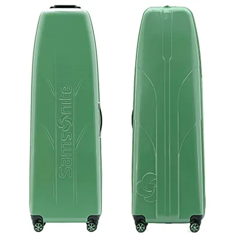 Transport your golf gear in style and security with the Samsonite Primo Deluxe Hard Sided Golf Travel Cover in Alpine Green. Crafted by Samsonite, this travel cover features a durable yet lightweight polycarbon shell, providing ultimate strength without the added weight. Designed to hold up to 48” clubs and 10.5” bags, your gear will stay protected during travel. Maneuvering through busy airports is a breeze with four multi-directional spinner wheels, while two comfort grip handles ensure easy transportation. The sleek and stylish design adds sophistication to your golf travel gear, and internal compression straps keep everything securely in place. Travel with ease and peace of mind with this high-quality golf travel cover.