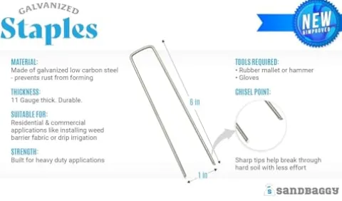 Sandbaggy’s 20,000-Count Rust-Free 6-Inch Landscape Staples are engineered for durability and reliability, making them an essential tool for both professionals and DIY enthusiasts. Crafted from 11-gauge galvanized steel, these heavy-duty staples are designed to withstand the toughest conditions, ensuring that your landscape fabric, weed barriers, and sod stay securely in place. Trusted by government agencies and contractors across the USA, with over 25 million staples installed in the past decade, these staples have garnered rave reviews for their strength and effectiveness. Each pack contains 20 boxes with 1,000 staples each, providing ample supply for large projects. Whether you’re working in a national park or your own backyard, Sandbaggy staples are the go-to solution for reliable landscaping support.