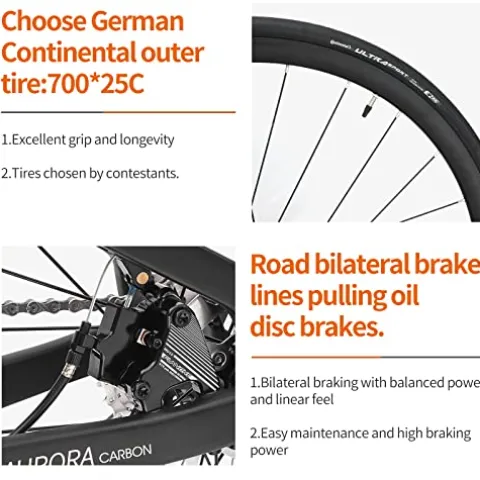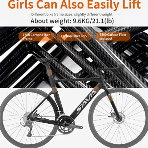 - đźš´TORAY T800 Carbon Fiber:We use high quality Japanese Carbon fiber for frame, fork, rims and seat post.This provides an ultra-light carbon road bike at 9.6kg (21.1lb),Entry-level race disc road bike for everyone.