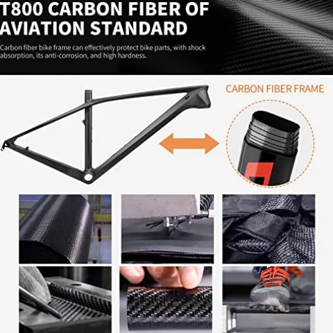 - T800 Carbon Fiber Frame provide mountain bike a structure that is uniquely strong and lightweight.