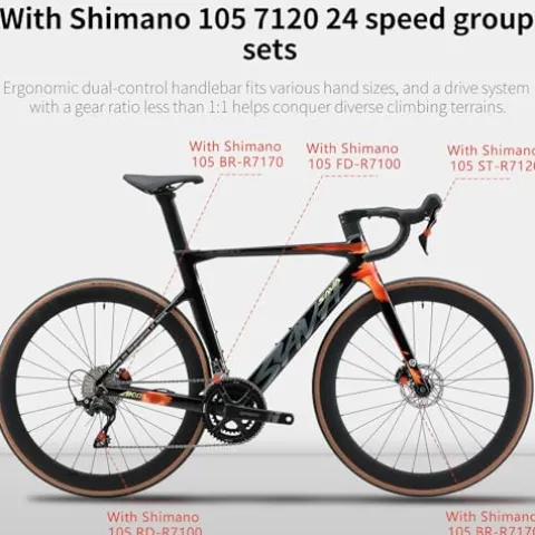 - 【With 105 R7120 Precision Shift Groupset】Dis Brake Road bicycle with R7120 2*12 Speeds with Shifter lever, R7100 Front derailleur, R7100 Rear derailleur , It enables you to start and operate your ride effectively, smooth shifting and durable.The best choice for Race cyclists.