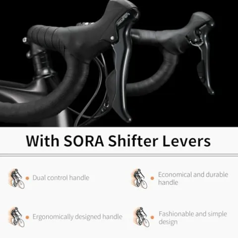 - 【Shimano Sora Shift Groupsets】 – Road bicycle with SHIMANO SORA 2*9 Speeds with Shifter lever, Front derailleur, Rear derailleur – It enables you to start and operate your ride effectively, smooth shifting and durable.