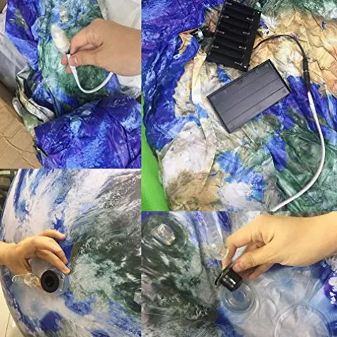 - What you get: 8 planet balls + 1 Pluto ball + 1 Sun ball + 1 moon ball + White lights + Repair kits + 1 Air pump + Ropes + Battery case (Package doesn’t include battery)