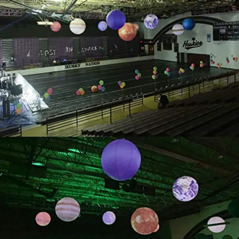 Transform your space into an astronomical wonder with the Sayok 40” Large Inflatable Planets Solar System set. This comprehensive collection includes 11 fully printed, vibrant balloons representing the eight planets, Pluto, the Sun, and Moon, all crafted from durable 0.25mm PVC. Ideal for educational institutions, planetariums, or themed parties, these impressive 40-inch diameter inflatables can be displayed on the ground or suspended for a truly immersive experience. Enhance your setup with included white lights and effortlessly inflate with the provided air pump. Perfect for interactive learning and engaging events, this kit also comes with repair kits, ropes, and a battery case for convenient setup. Please note, each planet requires 8 AAA batteries, which are not included.