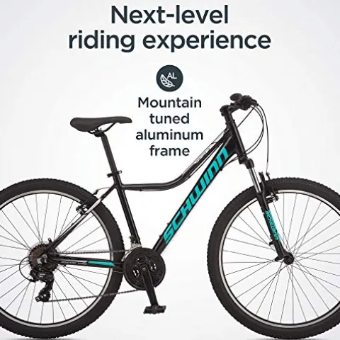 The Schwinn Mesa 3 Adult Mountain Bike is designed for riders looking to elevate their mountain biking experience. Featuring a women’s small frame fit for riders 63 to 67 inches tall and 27.5-inch wheels, this bike offers a perfect blend of agility and stability. The mountain-tuned aluminum frame and Zoom HL565 aluminum suspension fork make it ideal for tackling dirt trails and gravel paths with ease. With a 21-speed drivetrain and precise shifters, adapting to different terrains is seamless. The aluminum linear pull brakes ensure reliable stopping power in any weather condition, while the 27.5-inch wheels provide excellent traction and stability for all your cycling adventures.