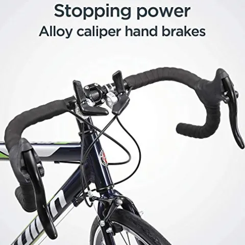 - Road bike equipped with alloy crank with double chain rings offers optimal gearing and alloy caliper brakes that ensure superior braking performance
