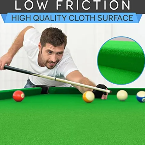- FOLDING DESIGN: The Portable Pool Table features foldable legs for easy storage. Its innovative design couples compact design w/ surprising portability. Measures 76” x 43” x 31.8”, perfect size for younger players learning the fun of pool