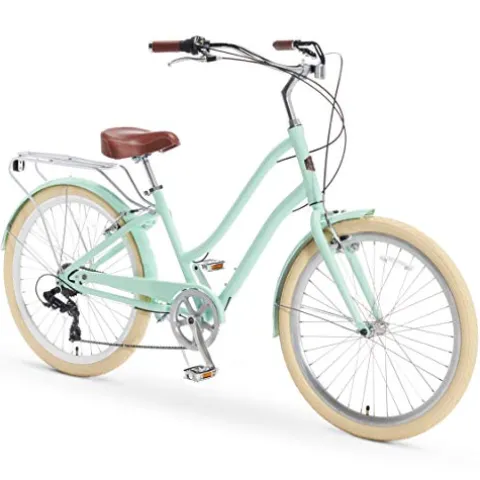 - 7-SPEED DESIGN: Beach cruiser bike features a 7-speed internal hub with an easy-to-use shifter, which enables you to handle longer distances and moderate hills; womens hybrid bike features a front handbrake and rear coaster brake to ensure precise stops