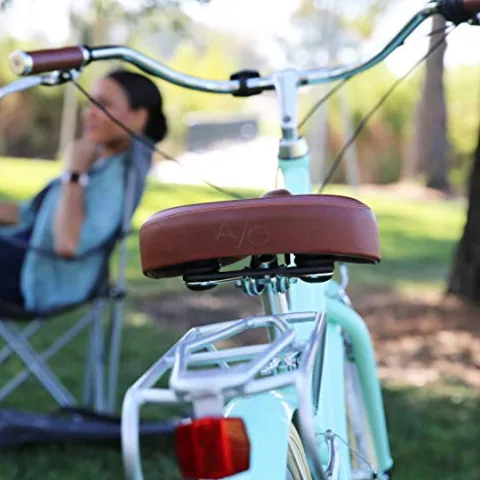 The A/O Frida Women’s Bicycle by sixthreezero is a versatile 7-speed hybrid bike designed for women seeking a comfortable and stylish ride. With a 17.5-inch step-through aluminum frame, this bike is perfect for various terrains, from casual cruises to daily commutes. Featuring an upright riding style, soft foam seat, and ergonomic handlebar grips, it ensures a comfortable experience for riders. The 7-speed design allows for easy handling on longer distances and moderate hills, while the front handbrake and rear coaster brake ensure precise stops. This sleek mint green bike comes with matching fenders and a rear rack for optional accessories, making it a practical and fashionable choice. Topped off with quality whitewall semi-slick tires, this hybrid bike offers a stable and cushioned ride for a smooth journey every time.