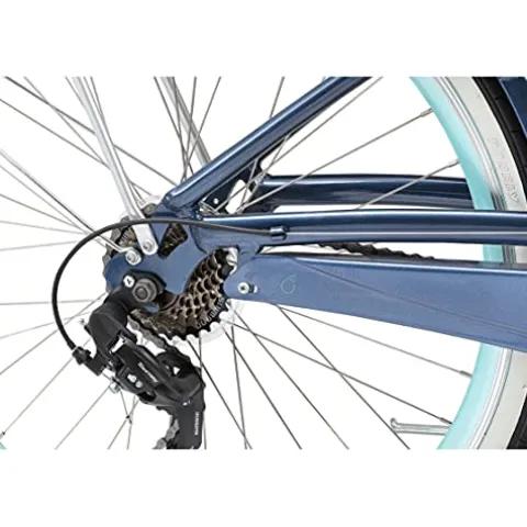 The sixthreezero Easy Boarding Women’s 7-Speed Bicycle in Navy is designed for comfort and convenience, making it ideal for riders seeking effortless mounting and dismounting. With its ultra-low step-thru frame, this hybrid comfort bike ensures safety and ease for riders of all abilities. The innovative pedal positioning, set four inches forward, allows you to maintain a low seat height while achieving optimal leg extension. Equipped with a 7-Speed Shimano Derailleur, this bike smoothly tackles moderate hills and varied terrains, from pavements to hard-packed trails. Its ergonomic design promotes a comfortable riding posture, alleviating pressure on your wrists, shoulders, back, and knees. Enjoy a smooth, enjoyable ride every time with this thoughtfully crafted bicycle.