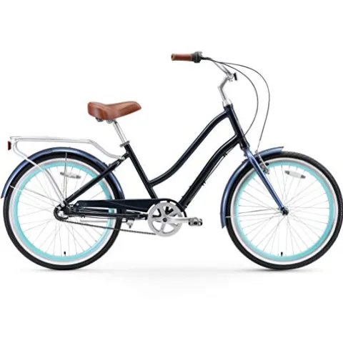 The sixthreezero EVRYjourney Women’s 7-Speed Step-Through Hybrid Cruiser Bicycle in Navy with Brown Seat and Grips is a stylish and versatile choice for urban commuting and leisurely rides. This hybrid bike features a step-through aluminum frame that allows for easy mounting and dismounting, ideal for riders of varying heights. With a Shimano 7-speed External Derailleur and front and rear handbrakes, this bike offers a smooth and controlled riding experience. The comfy brown synthetic leather saddle and grips provide a classic touch, while the 26″ wheels and semi-slick tires ensure a cushioned and stable ride. Whether you’re cruising around town or embarking on long-distance commutes, this bike offers both comfort and performance in one sleek package.