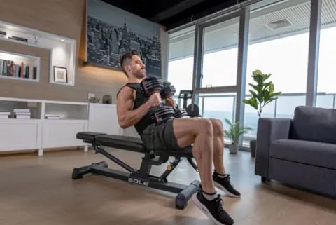 Enhance your strength training with the SOLE Fitness SW180 Adjustable Dumbbells. This versatile set of two dumbbells offers adjustable weights from 5lbs to 80lbs, providing flexibility to accommodate various fitness levels and exercise routines. The space-saving design makes them perfect for home gyms with limited space, without compromising on the quality of your workout. Crafted with premium materials, these dumbbells are built to last through even the most rigorous workout sessions. Target and tone different muscle groups effectively with this comprehensive dumbbell set, maximizing your results with precision and strength-building exercises.
