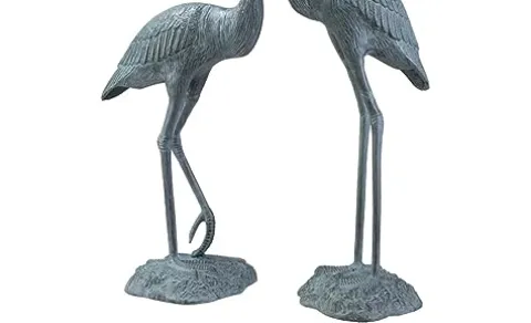 The SPI Weathered Gray Finish Heron Pair Garden Sculpture adds an elegant touch to any space, whether indoors or outdoors. Standing at an impressive 39 inches tall, this beautifully crafted piece is made from durable cast aluminum with a stunning verdigris bronze patina that enhances its classic charm. Perfect as a striking accent piece, this heron pair captures the grace of nature while providing a timeless decorative element to gardens, patios, or living rooms. Elevate your decor with this exquisite sculpture that reflects both artistry and resilience.