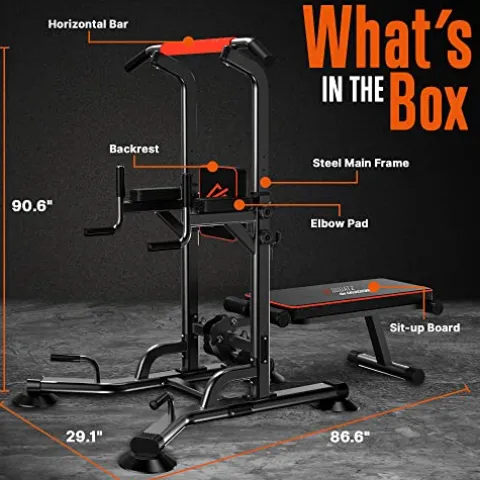 - ADJUSTABLE FOR DIFFERENT MUSCLE TRAINING: This workstation features an adjustable backrest, armrest, and a pull-up bar that can be altered from 59.1” (150cm) to 90.6” (230 cm) to provide users with the optimal environment for full-body training.