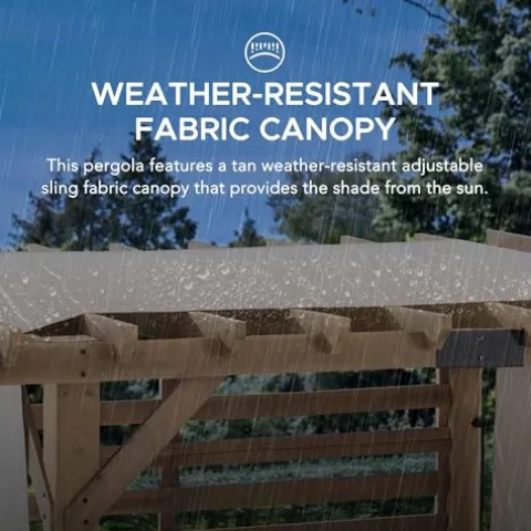 - Functional & Stylish Design: This pergola features a Tan weather-resistant adjustable sling fabric canopy and solid wood fence privacy screen. The stylish and convenient design provides you with comfortable shade for your outdoor hot tub area.