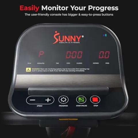 Enhance your fitness routine with the Sunny Health & Fitness Endurance Cardio Running Walking Treadmill. Designed for training and recovery, this treadmill features extended safety handrails and a low wide deck for added security and comfort. With multiple fitness levels and speeds up to 8.5mph, it caters to beginners, intermediates, and advanced users. Stay connected with the SunnyFit® App Enhanced Bluetooth Connectivity, offering access to over 1000 workouts and 10,000 routes worldwide. The user-friendly console and pulse sensors make monitoring your progress a breeze, while the shock absorption system ensures a low-impact workout. Trust in Sunny Health & Fitness’ 20+ years of excellence for a top-notch fitness experience.